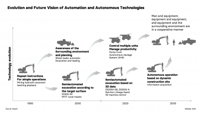 In Spring 2024, this evolution was evident at Intermat in Paris. Companies like Hitachi, Bobcat, and Develon highlighted their forays into autonomous machinery —a crucial adaptation for future construction site operations. Volvo, Liebherr and Mecalac presented their new electric loaders and a variety of electrified excavation and loading equipment.