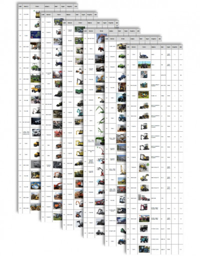 The database contains the following machine types and subcategories. It is structured in Excel format and can be filtered and sorted according to machine types and other technical criteria.