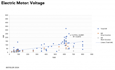 The first part is an in-depth examination of electrification, offering a thorough overview of electric machinery and associated devices. It details the power (in kW), capacity (in kWh), and voltage (in V) of various electrified machines, supported by detailed diagrams and tables. A complete profile of each analyzed machine is available in the FDT database.