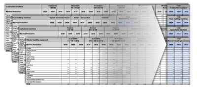 The database contains the following machine types and subcategories. It is structured in Excel format and can be filtered and sorted according to machine types and other technical criteria.